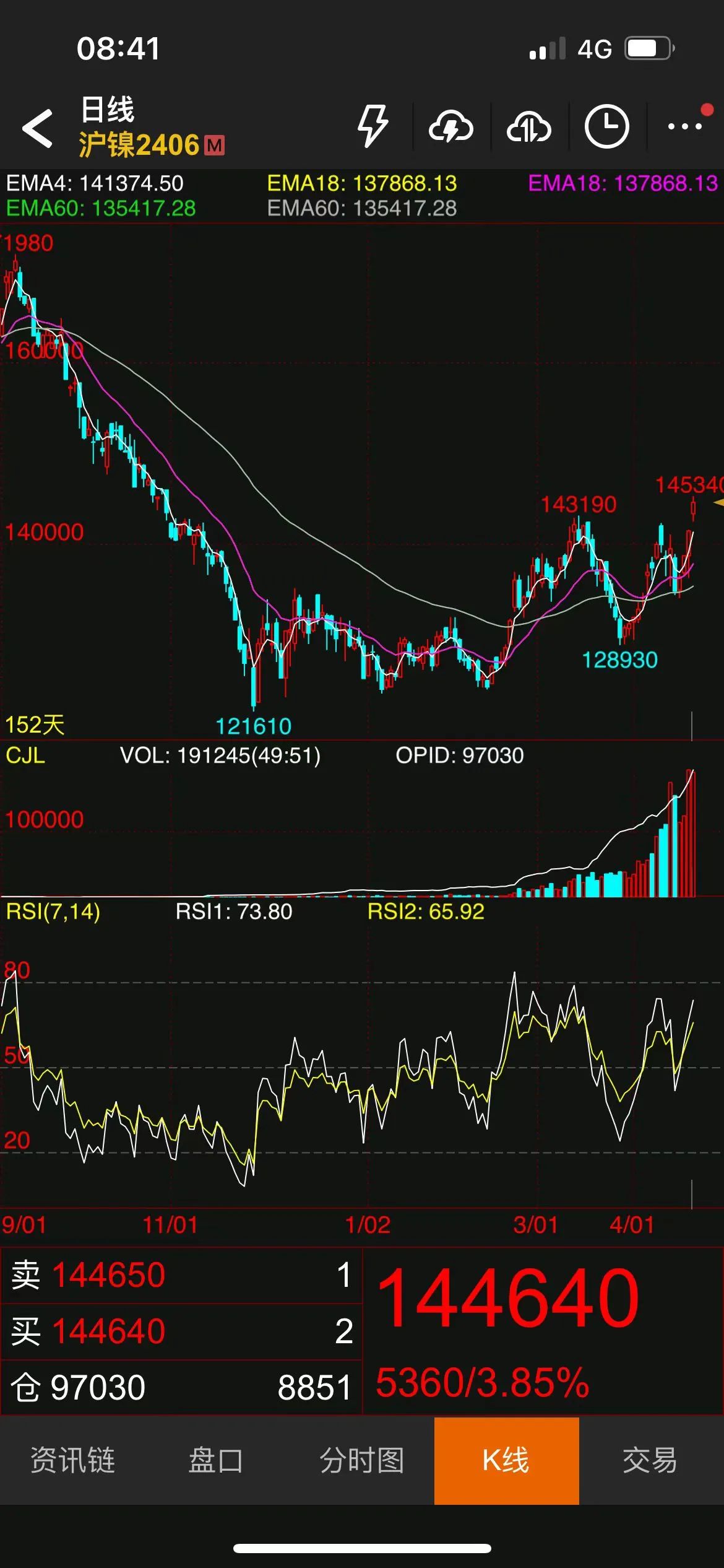 交易上,沪镍跳空高开突破此前关键压力区域,叠加增仓放量,短线可相对乐观,轻仓做多!短线止损位参照14—14.2万区域!